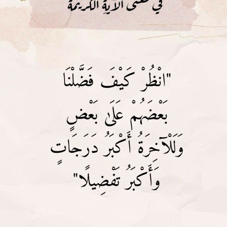 في معنى الآيةِ الكريمة “انْظُرْ كَيْفَ فَضَّلْنَا بَعْضَهُمْ عَلَىٰ بَعْضٍ وَلَلْآخِرَةُ أَكْبَرُ دَرَجَاتٍ وَأَكْبَرُ تَفْضِيلًا”