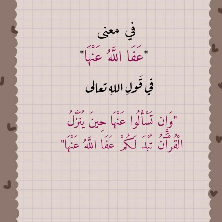 في معنى “عَفَا اللَّهُ عَنْهَا” في قَولِ اللهِ تعالى “وَإِن تَسْأَلُوا عَنْهَا حِينَ يُنَزَّلُ الْقُرْآنُ تُبْدَ لَكُمْ عَفَا اللَّهُ عَنْهَا”
