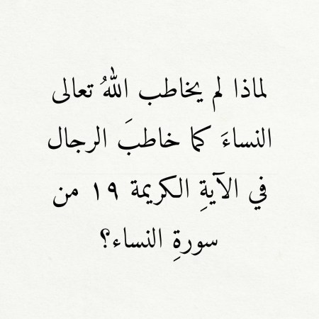 لماذا لم يخاطب اللهُ تعالى النساءَ كما خاطبَ الرجال في الآيةِ الكريمة ١٩ من سورةِ النساء؟