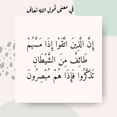في معنى قَولِ اللهِ تعالى “إِنَّ الَّذِينَ اتَّقَوْا إِذَا مَسَّهُمْ طَائِفٌ مِنَ الشَّيْطَانِ تَذَكَّرُوا فَإِذَا هُمْ مُبْصِرُونَ”