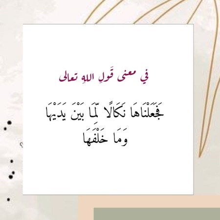 في معنى قَولِ اللهِ تعالى “فَجَعَلْنَاهَا نَكَالًا لِمَا بَيْنَ يَدَيْهَا وَمَا خَلْفَهَا”