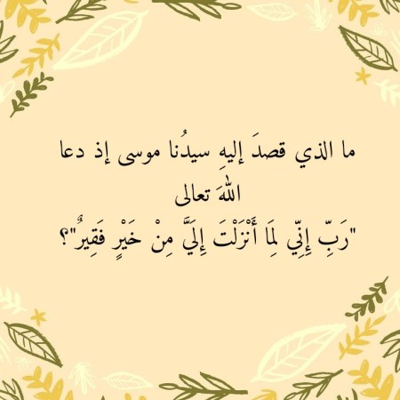 ما الذي قصدَ إليهِ سيدُنا موسى إذ دعا اللهَ تعالى “رَبِّ إِنِّي لِمَا أَنْزَلْتَ إِلَيَّ مِنْ خَيْرٍ فَقِيرٌ”؟
