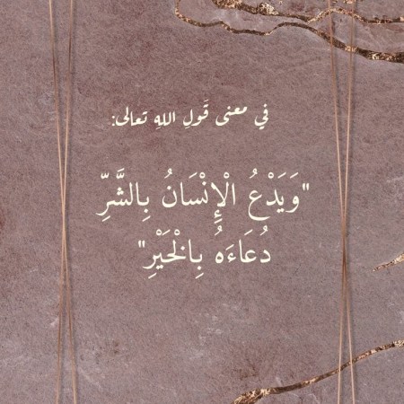 في معنى قَولِ اللهِ تعالى “وَيَدْعُ الْإِنْسَانُ بِالشَّرِّ دُعَاءَهُ بِالْخَيْرِ”