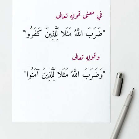 في معنى قولِهِ تعالى “ضَرَبَ اللَّهُ مَثَلا لِّلَّذِينَ كَفَرُوا” وقولِهِ تعالى “وَضَرَبَ اللَّهُ مَثَلا لِّلَّذِينَ آمَنُوا”