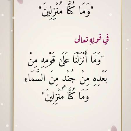 في معنى “وَمَا كُنَّا مُنْزِلِينَ” في قولِهِ تعالى “وَمَا أَنْزَلْنَا عَلَىٰ قَوْمِهِ مِنْ بَعْدِهِ مِنْ جُنْدٍ مِنَ السَّمَاءِ وَمَا كُنَّا مُنْزِلِينَ”