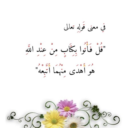 في معنى قَولِهِ تعالى “قُلْ فَأْتُوا بِكِتَابٍ مِنْ عِنْدِ اللَّهِ هُوَ أَهْدَى مِنْهُمَا أَتَّبِعْهُ”
