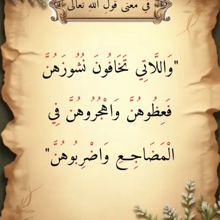 في معنى قَولِ اللهِ تعالى “وَاللَّاتِي تَخَافُونَ نُشُوزَهُنَّ فَعِظُوهُنَّ وَاهْجُرُوهُنَّ فِي الْمَضَاجِعِ وَاضْرِبُوهُنَّ”