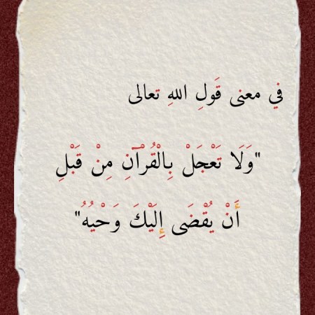 في معنى قَولِ اللهِ تعالى “وَلَا تَعْجَلْ بِالْقُرْآنِ مِنْ قَبْلِ أَنْ يُقْضَى إِلَيْكَ وَحْيُهُ”