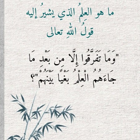 ما هو العِلمُ الذي يشيرُ إليه قولُ اللهِ تعالى “وَمَا تَفَرَّقُوا إِلَّا مِن بَعْدِ مَا جَاءَهُمُ الْعِلْمُ بَغْيًا بَيْنَهُمْ”؟