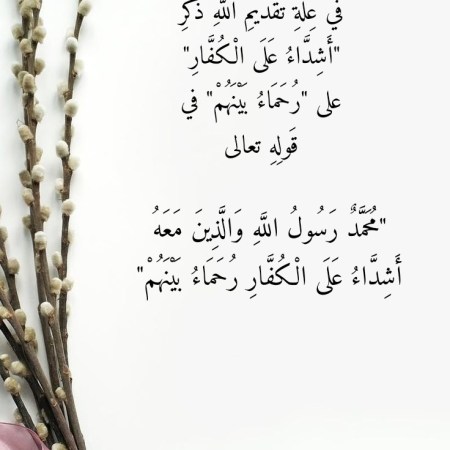 في عِلةِ تقديمِ اللهِ ذكرِ “أَشِدَّاءُ عَلَى الْكُفَّارِ” على “رُحَمَاءُ بَيْنَهُمْ” في قَولِهِ تعالى “مُحَمَّدٌ رَسُولُ اللَّهِ وَالَّذِينَ مَعَهُ أَشِدَّاءُ عَلَى الْكُفَّارِ رُحَمَاءُ بَيْنَهُمْ”