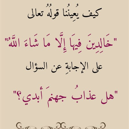 سبتمبر 13, 2021سبتمبر 14, 2021 Sufism24/7 كيف يُعِينُنا قولُهُ تعالى “خَالِدِينَ فِيهَا إِلَّا مَا شَاءَ اللَّهُ” على الإجابةِ عن السؤال “هل عذابُ جهنمَ أبدي؟”