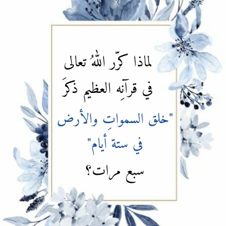 أفريل 29, 2021أفريل 29, 2021 Sufism24/7 لماذا كرّر اللهُ تعالى في قرآنِه العظيم ذكرَ “خلق السمواتِ والأرض في ستة أيام” سبع مرات؟