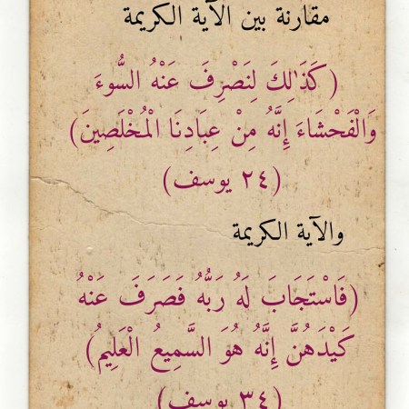 مقارنةٌ بين الآيتين الكريمتين 24 و34 من سورة يوسف عليه السلام