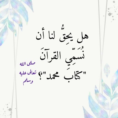 نوفمبر 4, 2021نوفمبر 4, 2021 Sufism24/7 هل يحِقُّ لنا أن نُسَمِّي القرآنَ “كتابَ محمد” (صلى الله تعالى عليه وسلم)؟
