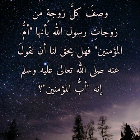 جانفي 20, 2021 Sufism24/7 إذا كان القرآنُ العظيم قد وصفَ كلَّ زوجةٍ من زوجاتِ رسول الله بأنها “أمُّ المؤمنين” فهل يحق لنا أن نقولَ عنه صلى الله تعالى عليه وسلم إنه “أبُّ المؤمنين”؟