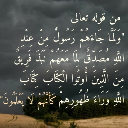 سبتمبر 21, 2020 Sufism24/7 في معنى “كَأَنَّهُمْ لَا يَعْلَمُونَ” من قوله تعالى “وَلَمَّا جَاءَهُمْ رَسُولٌ مِنْ عِنْدِ اللَّهِ مُصَدِّقٌ لِمَا مَعَهُمْ نَبَذَ فَرِيقٌ مِنَ الَّذِينَ أُوتُوا الْكِتَابَ كِتَابَ اللَّهِ وَرَاءَ ظُهُورِهِمْ كَأَنَّهُمْ لَا يَعْلَمُونَ”
