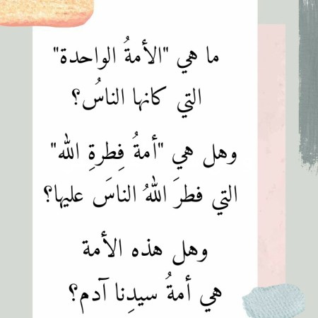 سبتمبر 7, 2020 Sufism24/7 ما هي “الأمة الواحدة” التي كانها الناسُ؟ وهل هي “أمةُ فطرةَ اللهِ” التي فطر اللهُ الناس عليها؟ وهل هذه الأمة هي أمة سيدنا آدم؟