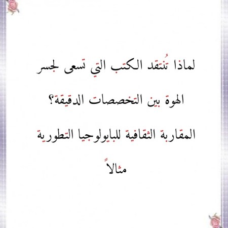 أفريل 20, 2026 Sufism24/7 لماذا تُنتقد الكتب التي تسعى لجسر الهوة بين التخصصات الدقيقة؟ المقاربة الثقافية للبايولوجيا التطورية مثالاً